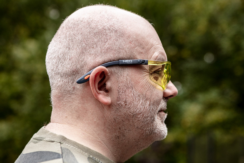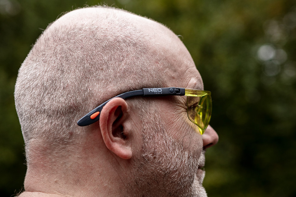 NEO TOOLS Védőszemüveg, polikarbonát, sárga lencse, állítható keret 97-501