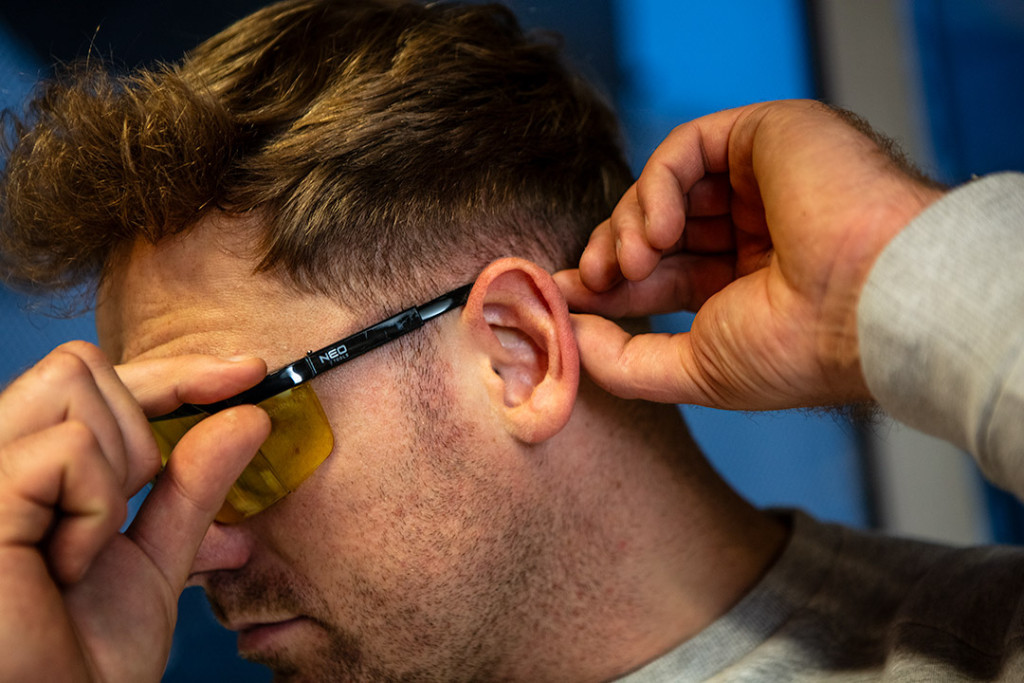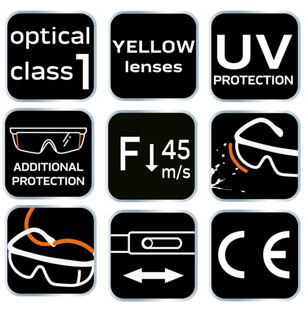 NEO TOOLS Védőszemüveg, sárga lencsékkel, állítható szárral 97-506