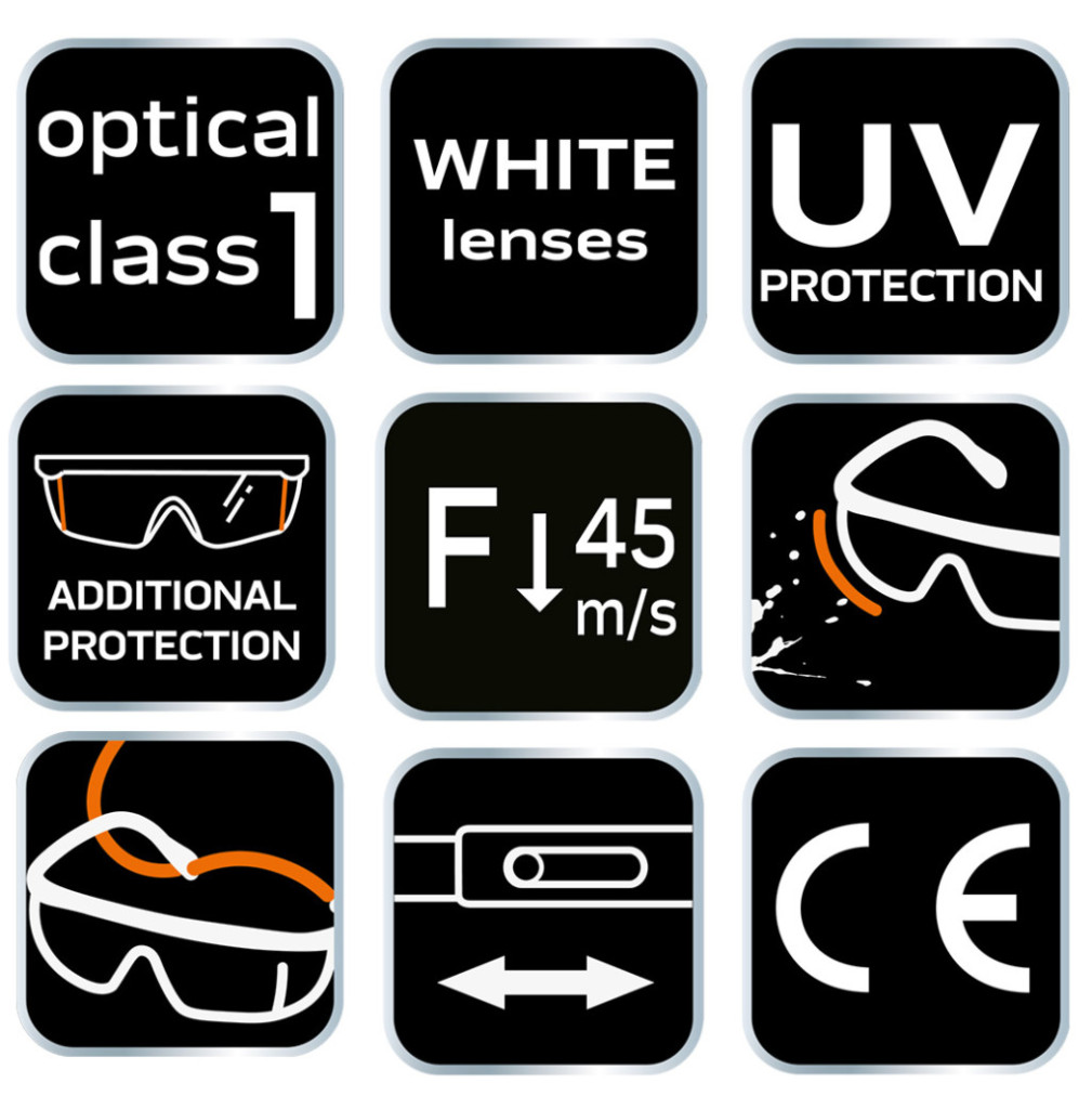 NEO TOOLS Védőszemüveg, víztiszta lencsékkel, állítható szárral 97-505
