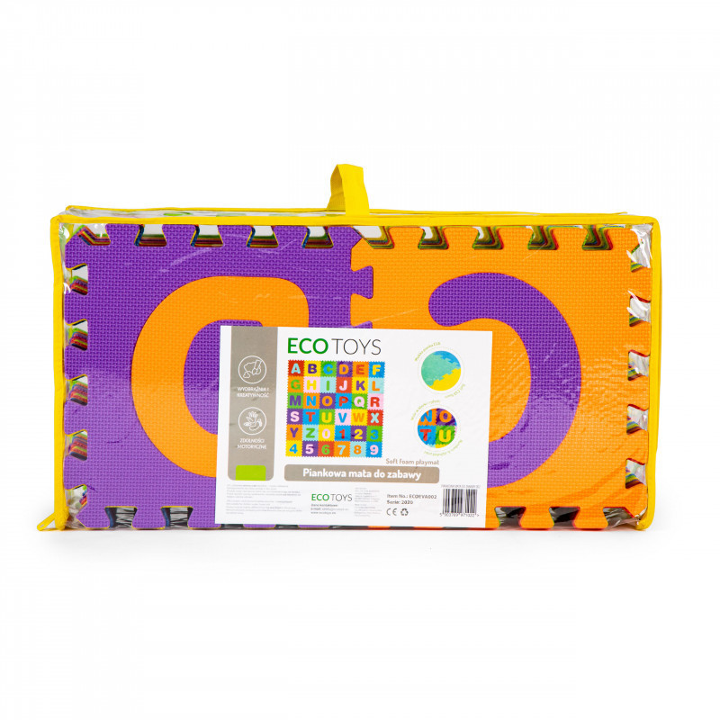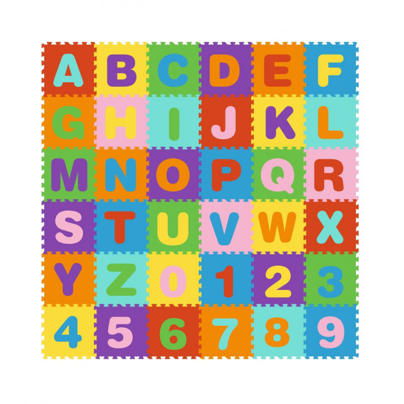 Nagy habos EVA szőnyeg gyerekeknek betűk számok 178x178 cm 36 db.