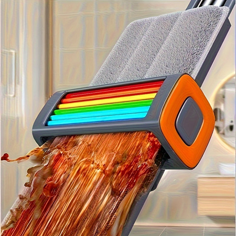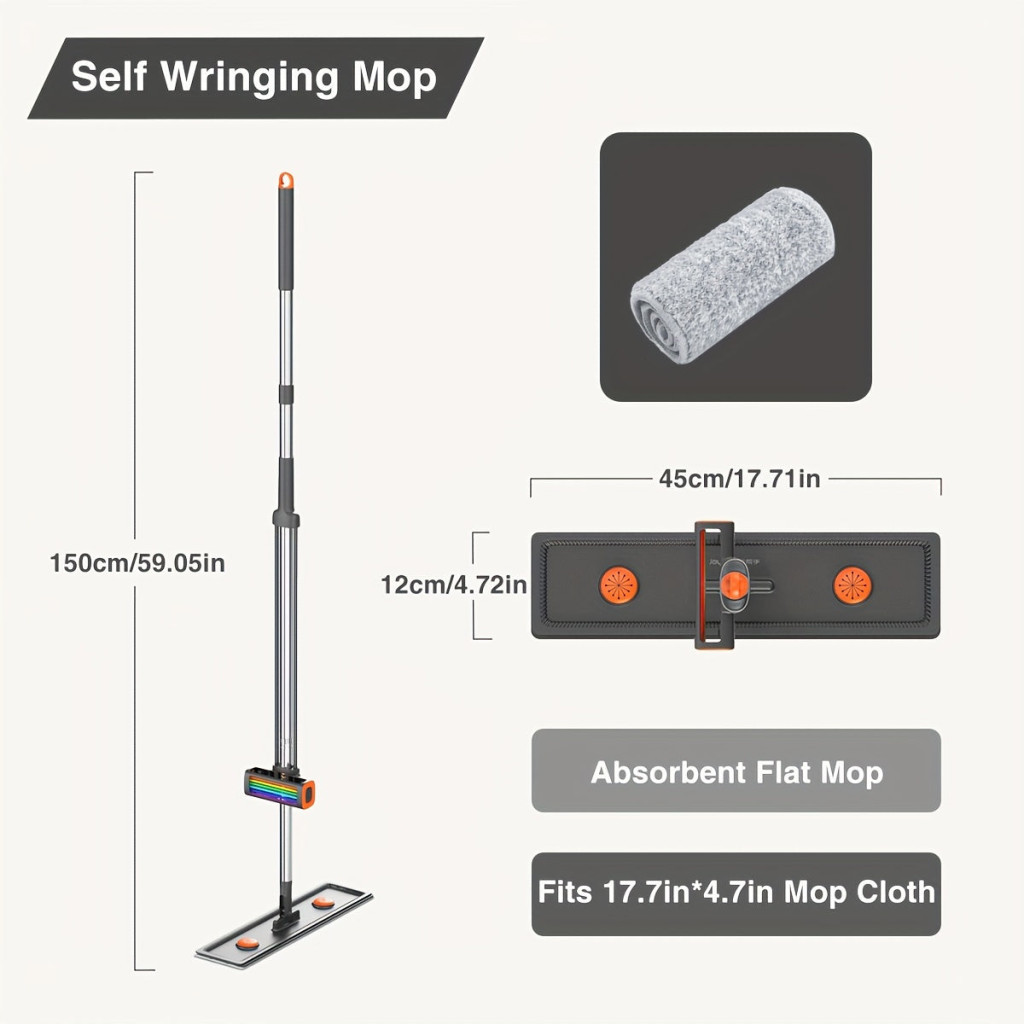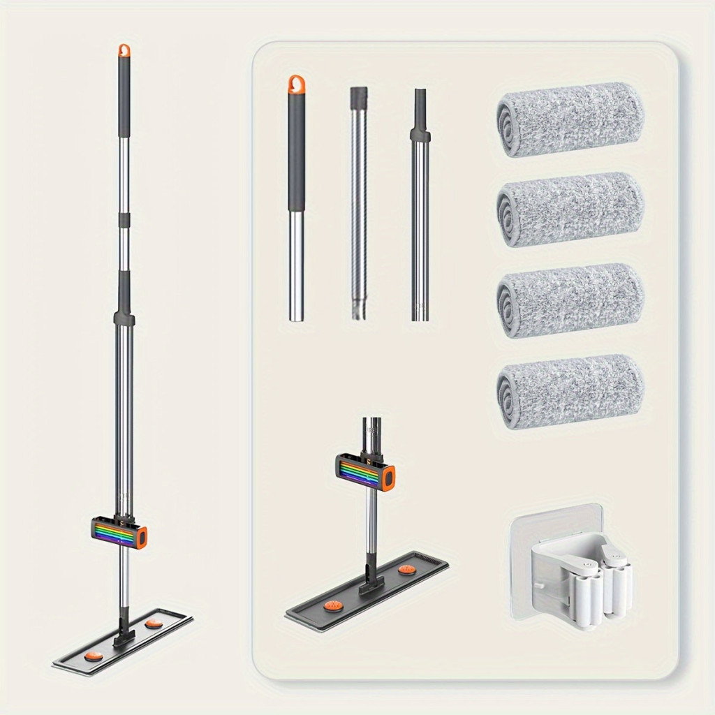 Öncsavarós, rozsdamentes acélból készült lapos felmosó 4 újrafelhasználható párnával