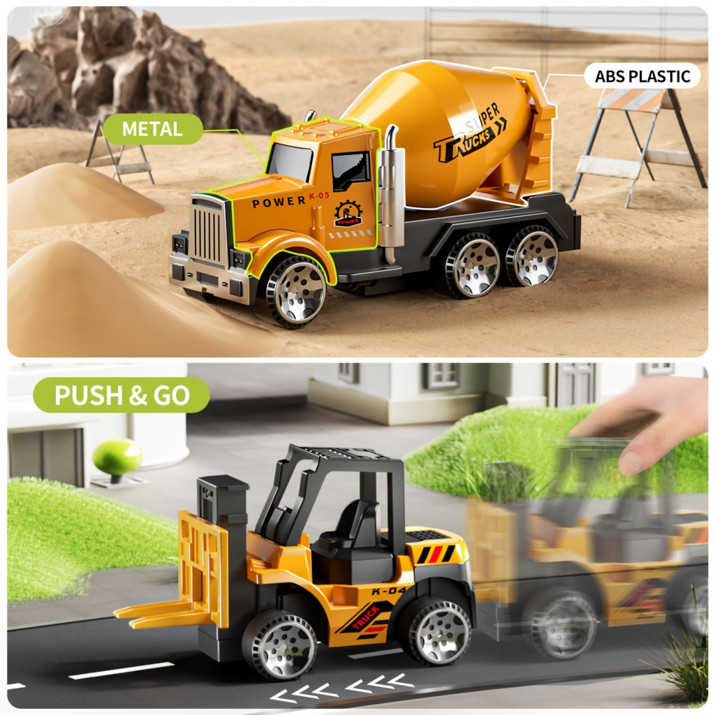 Öntött Acél Építőipari Jármű Játékkészlet Játékszőnyeggel