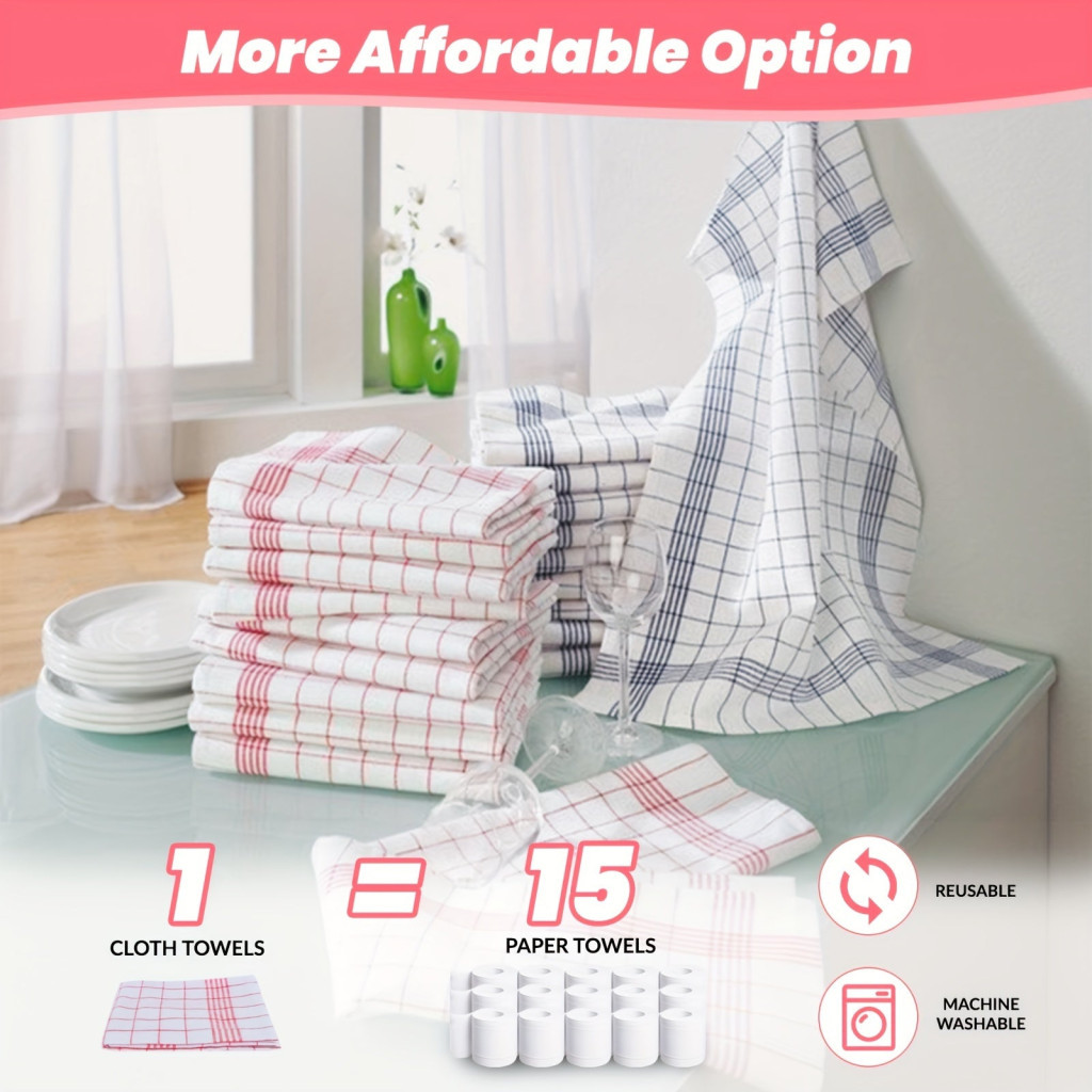 Piros és kék kockás pamut konyhai törölköző