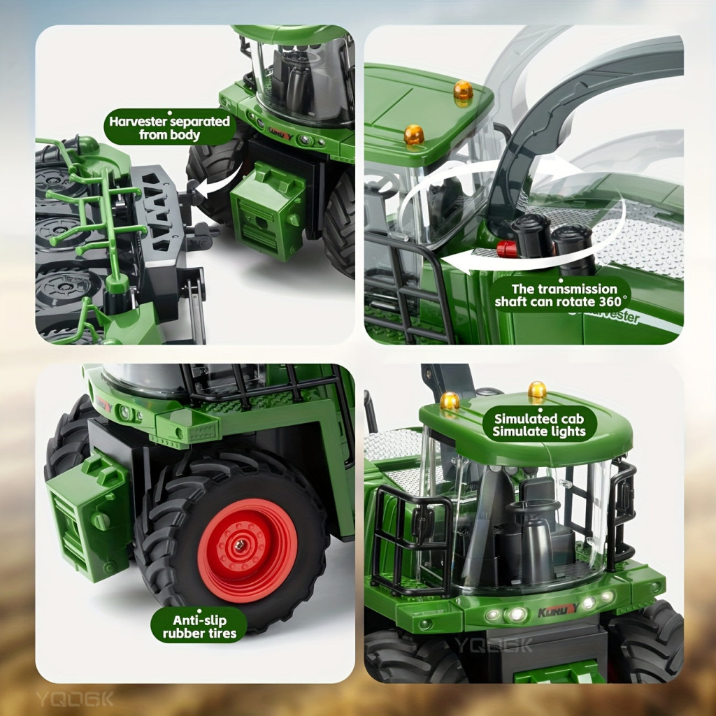 RC Traktor Kombájnnal és Világítással – 1:24 Méretarány, Tartós ABS, Akkumulátoros Traktor Játék