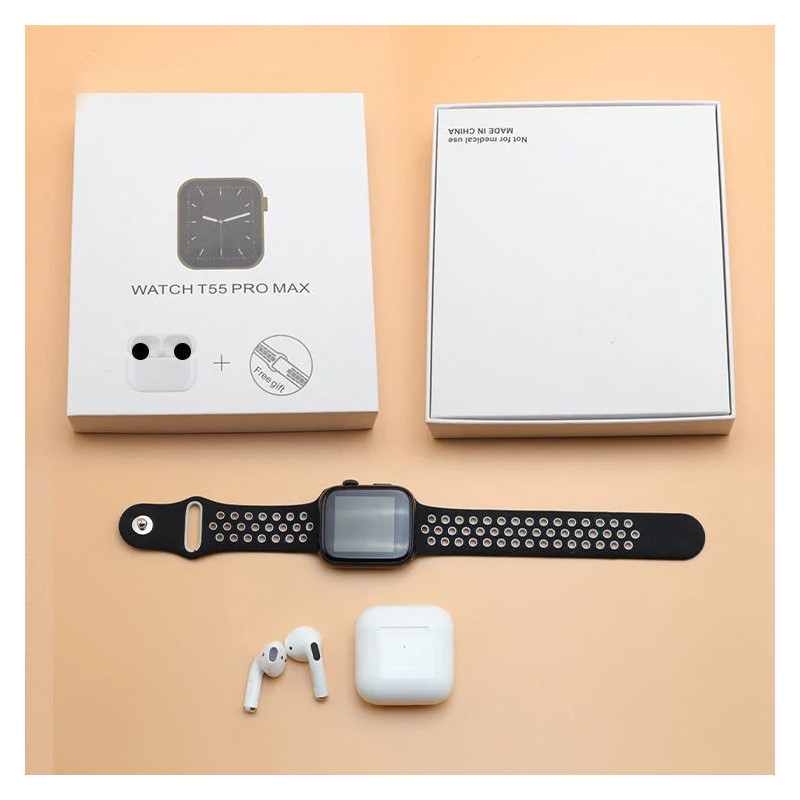 T55 Pro Max okosóra+fülhallgató fekete - ajándék szíjjal