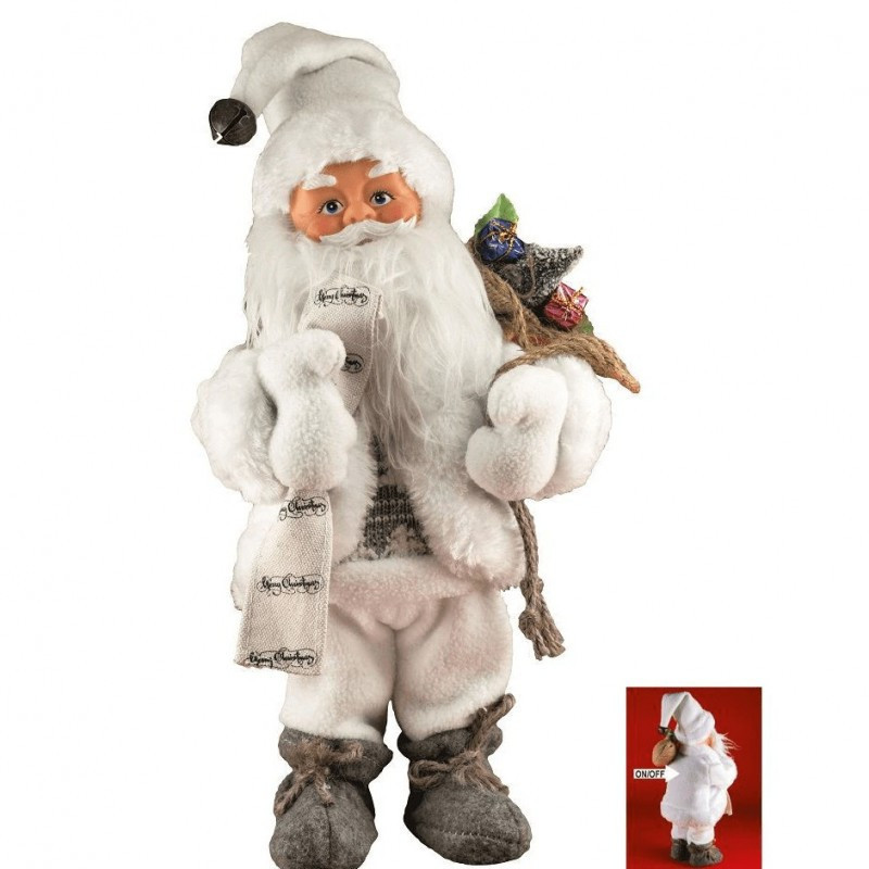 Táncoló, zenélő Mikulás, fehér ruhás