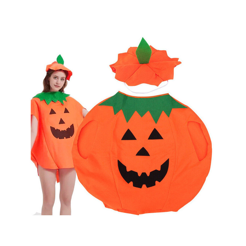Tök jelmez álca Halloween-ra - gyerek és felnőtt méretben, aranyos narancssárga tök designnal, kiegészítőkkel.
