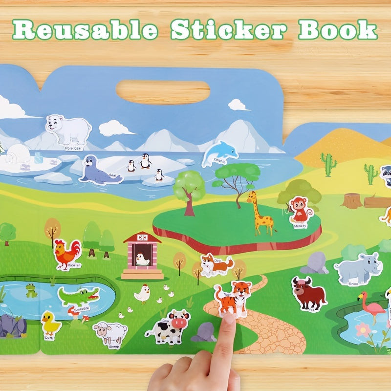 Újrahasználható matricáskönyv, mosható matricák, karácsonyi ajándék felnőtteknek, húsvéti ajándék - tél, újév Állatok