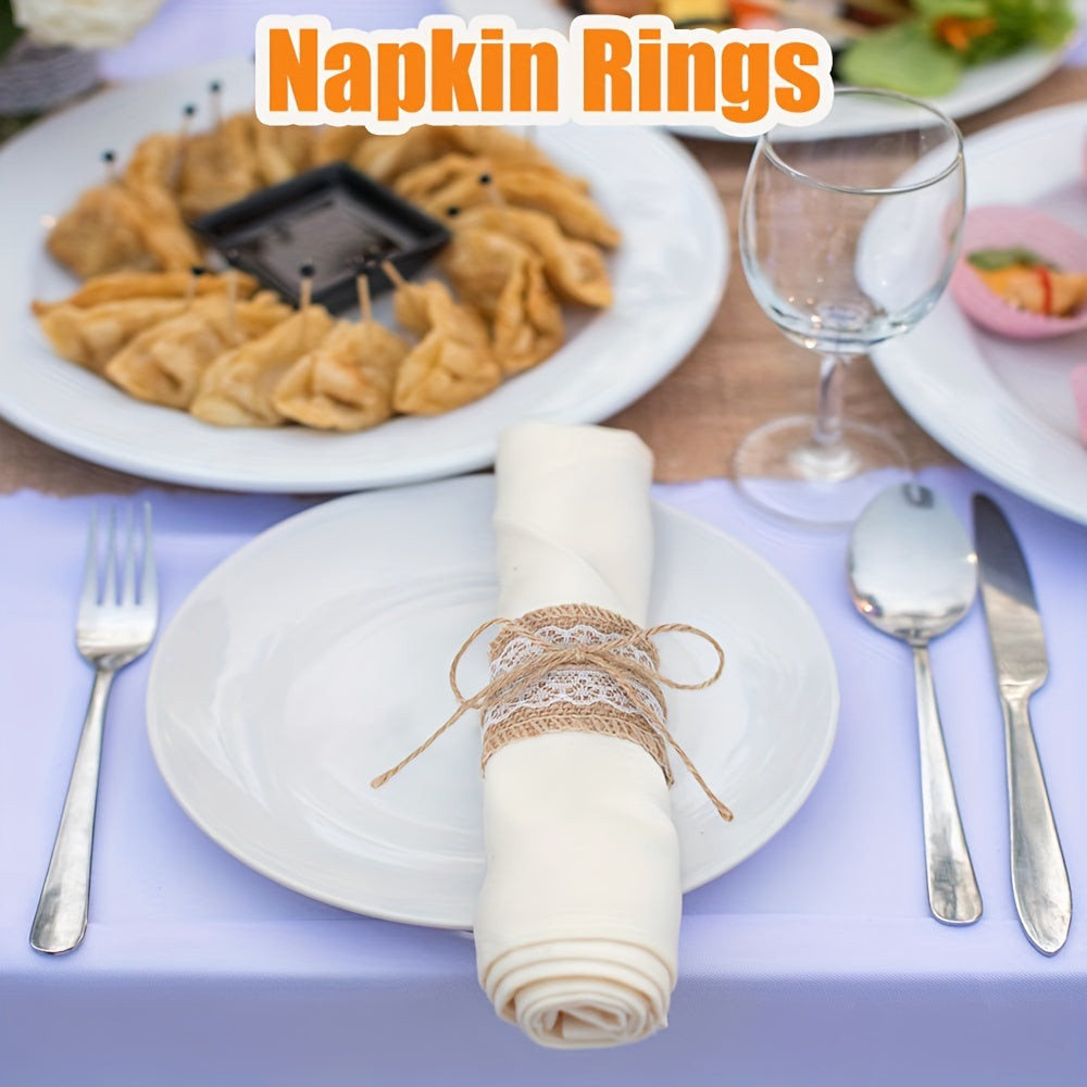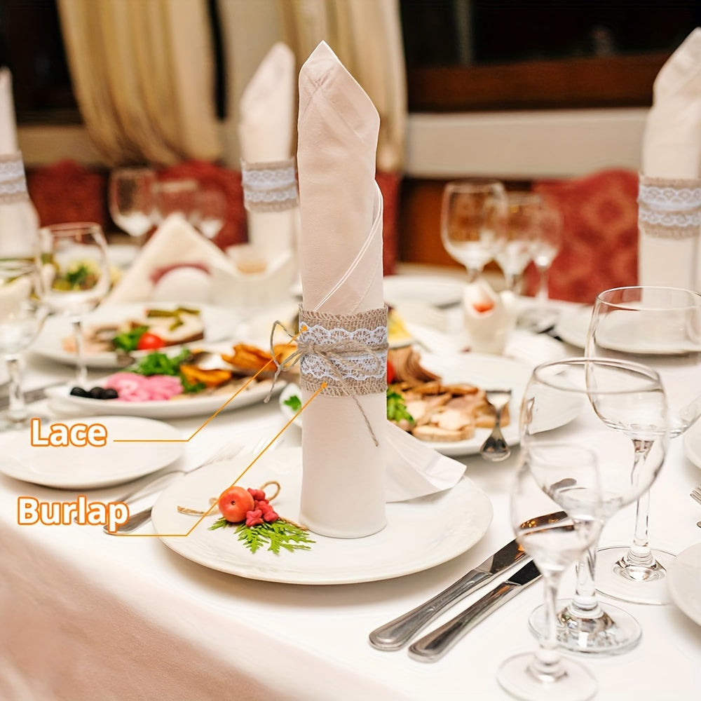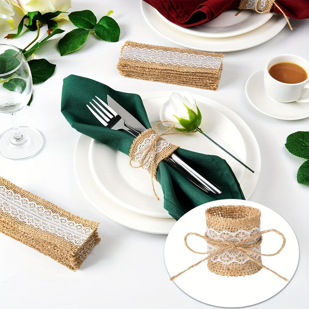 Ünnepi juta szalvétagyűrűk csipke díszítéssel