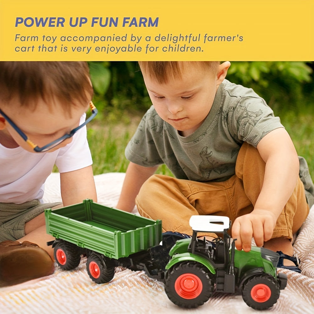 Zöld traktor és pótkocsi játékkészlet farmer kocsival
