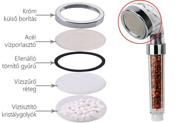 Zuhanyfej, zuhanyrózsa SPA vízszűrő zuhanyfej