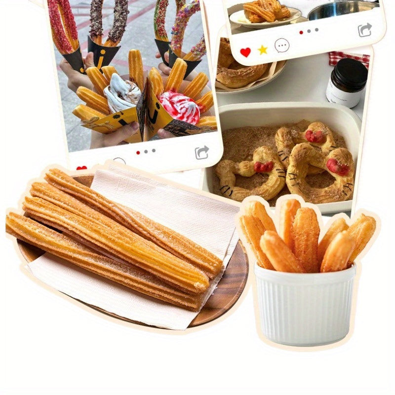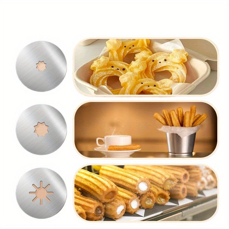 rozsdamentes acél tésztaadagoló - kézi churros készítő több fúvókával - sokoldalú tésztaprés spanyol churroshoz, latin süteményekhez
