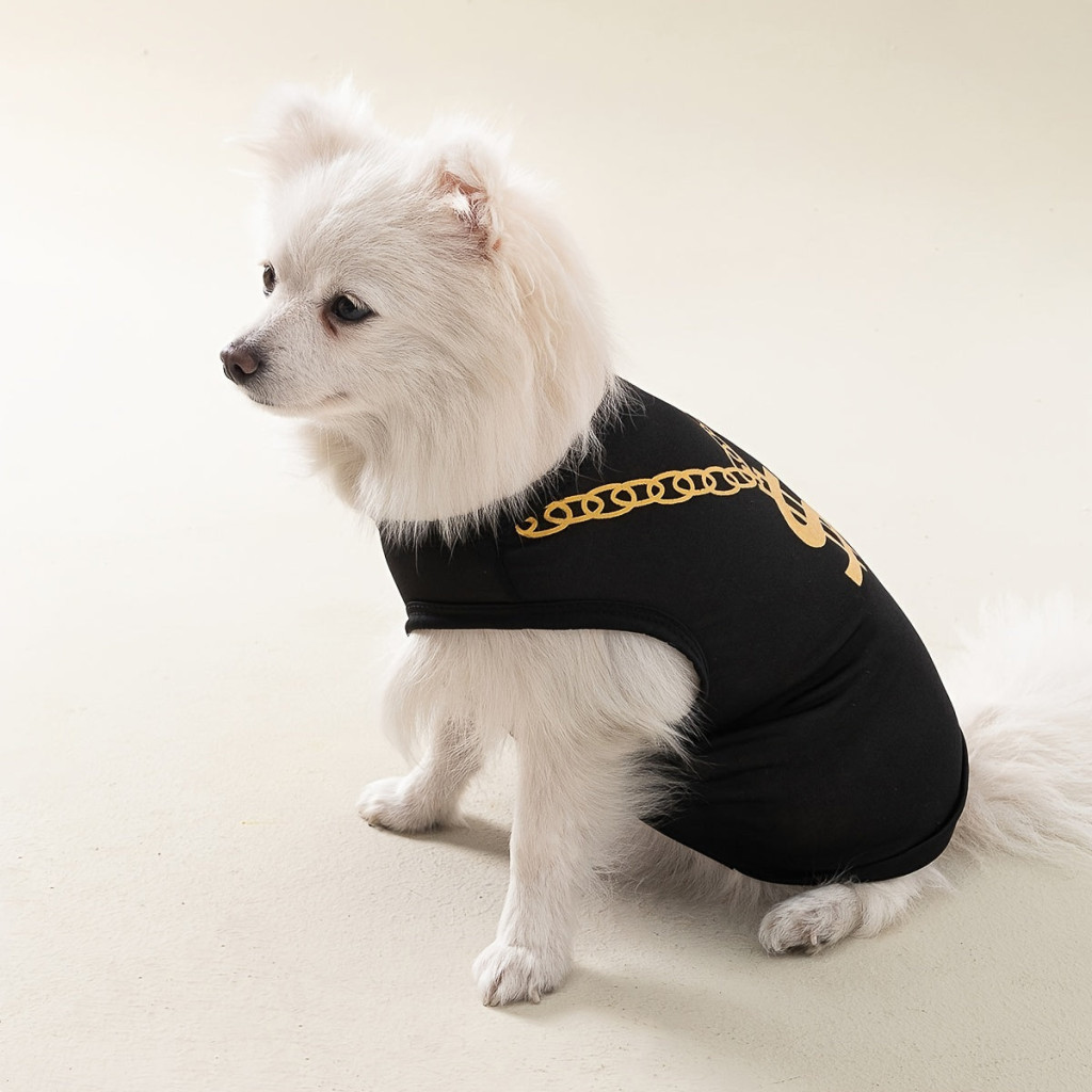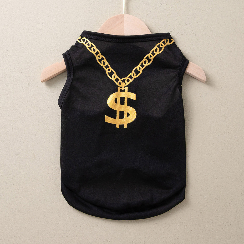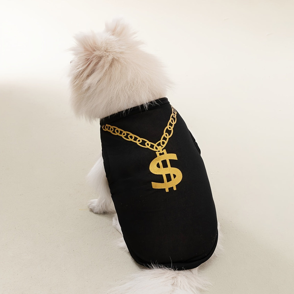Imádnivaló nyári kisállatruházat: Arany láncmintás mellény macskáknak és kistestű kutyáknak