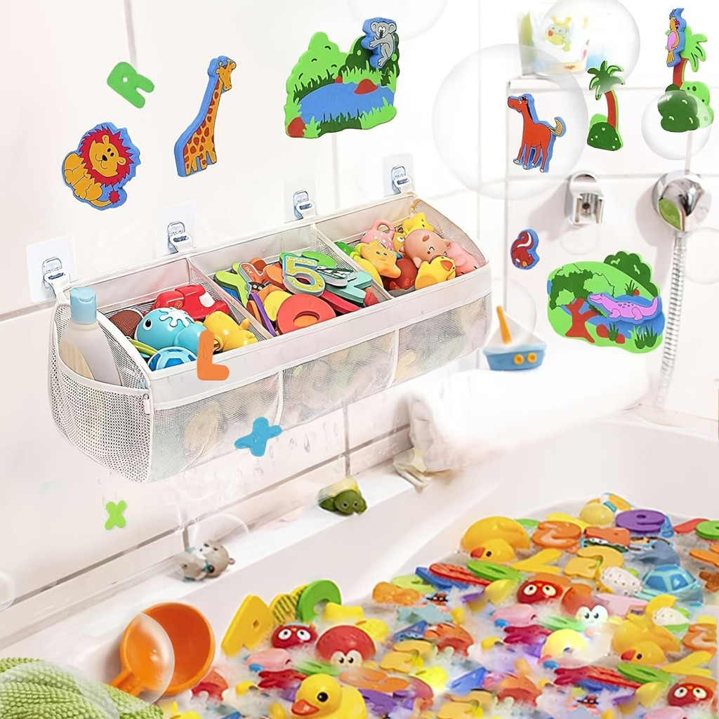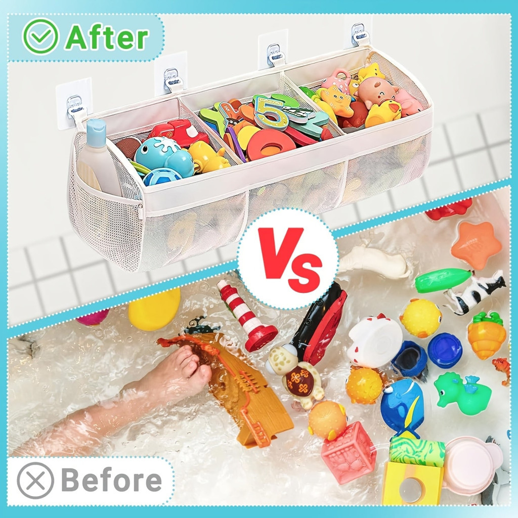 Sokoldalú hálós szervezőtáska fürdőszobához és zuhanyhoz - Ideális játékok, snackek és hajkiegészítők tárolására fehér