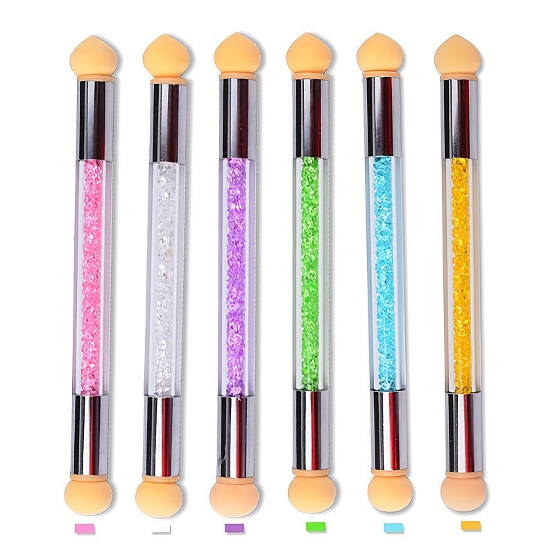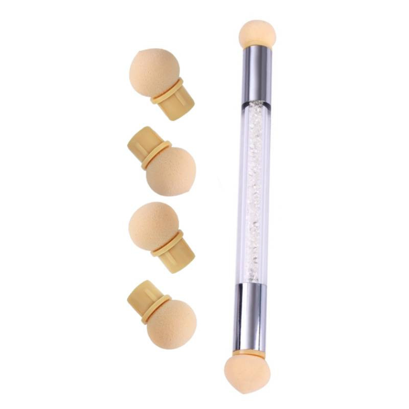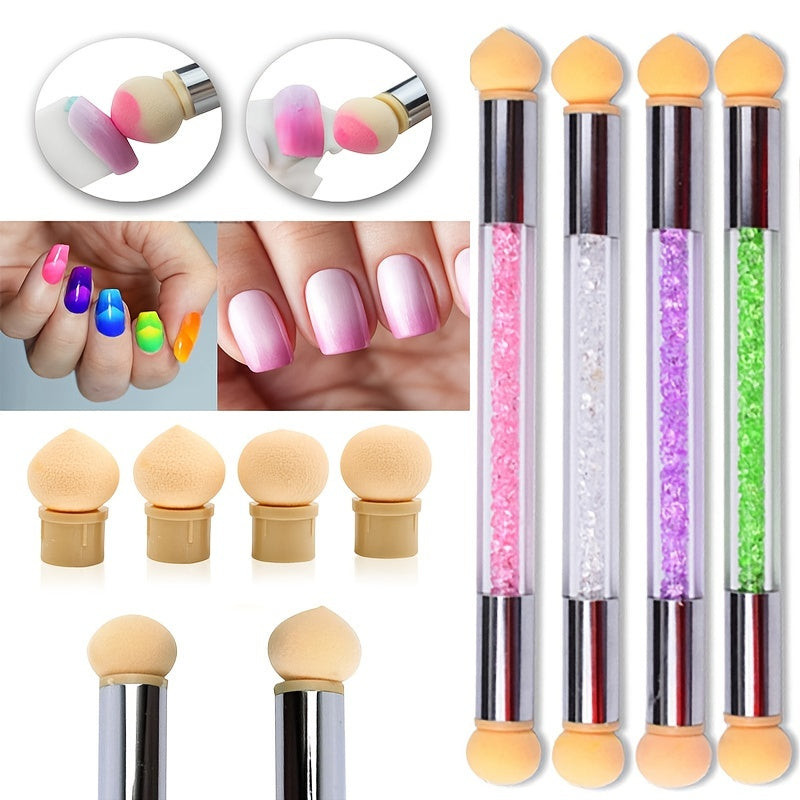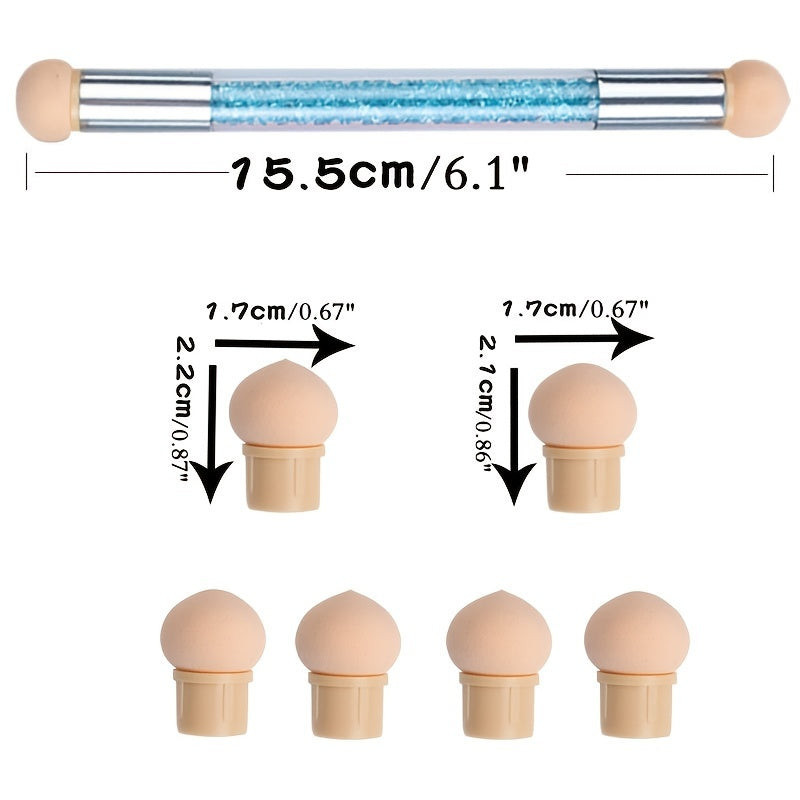 Gradient Sponges körömdíszítő ecsetkészlet 4 cserélhető fejjel – akrilgél, csillámos és púderszedő pöttyező eszközök professzionális körömművészeknek