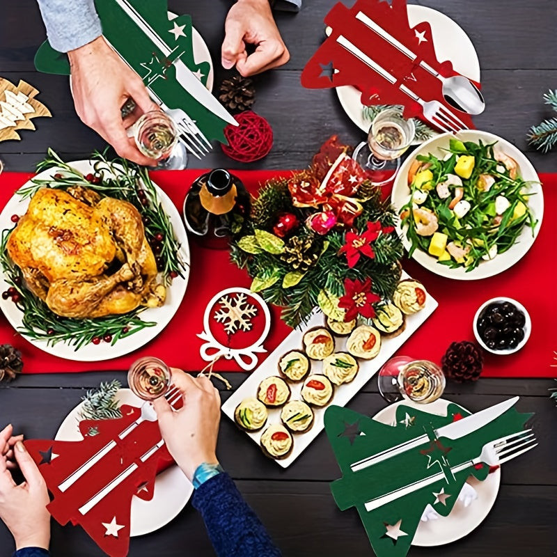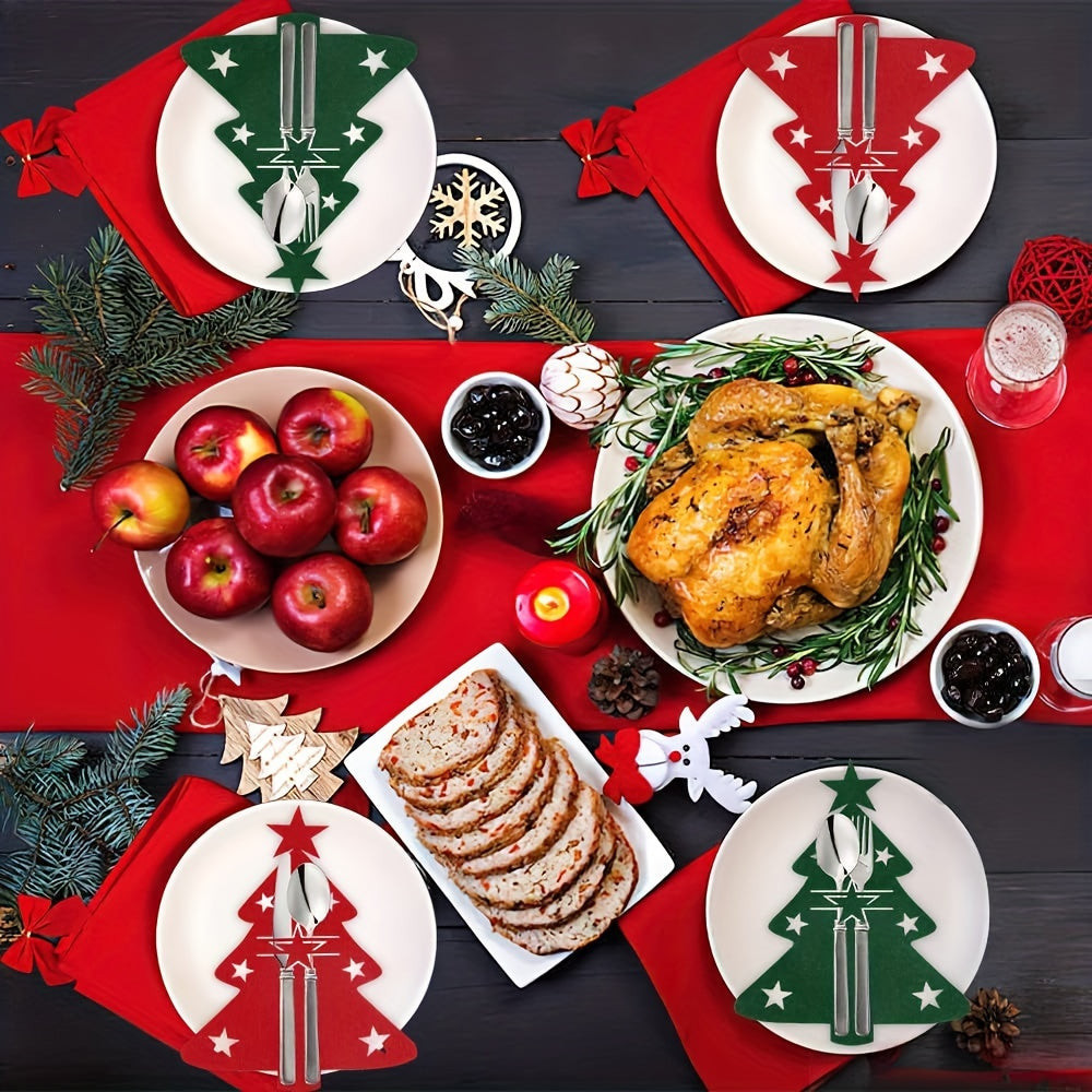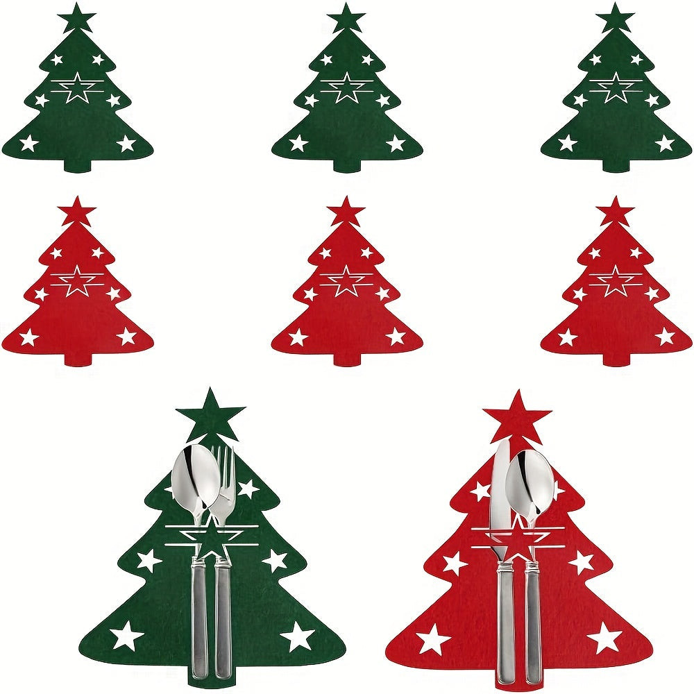 10db, Nemez evőeszköz tartó karácsonyfához, karácsonyi filc evőeszköz táska, karácsonyi evőeszköz táska, piros és zöld karácsonyi partikhoz, ünnepi vacsorapartik dekor