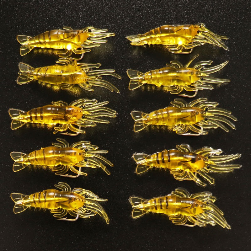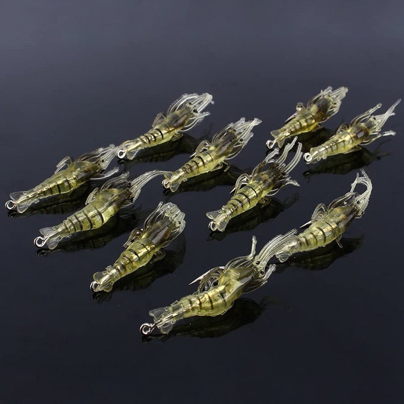 10db Sötétben világító szilikon garnélarák horgászcsali horoggal