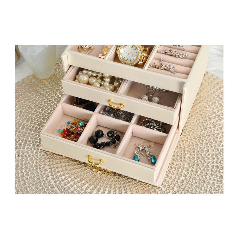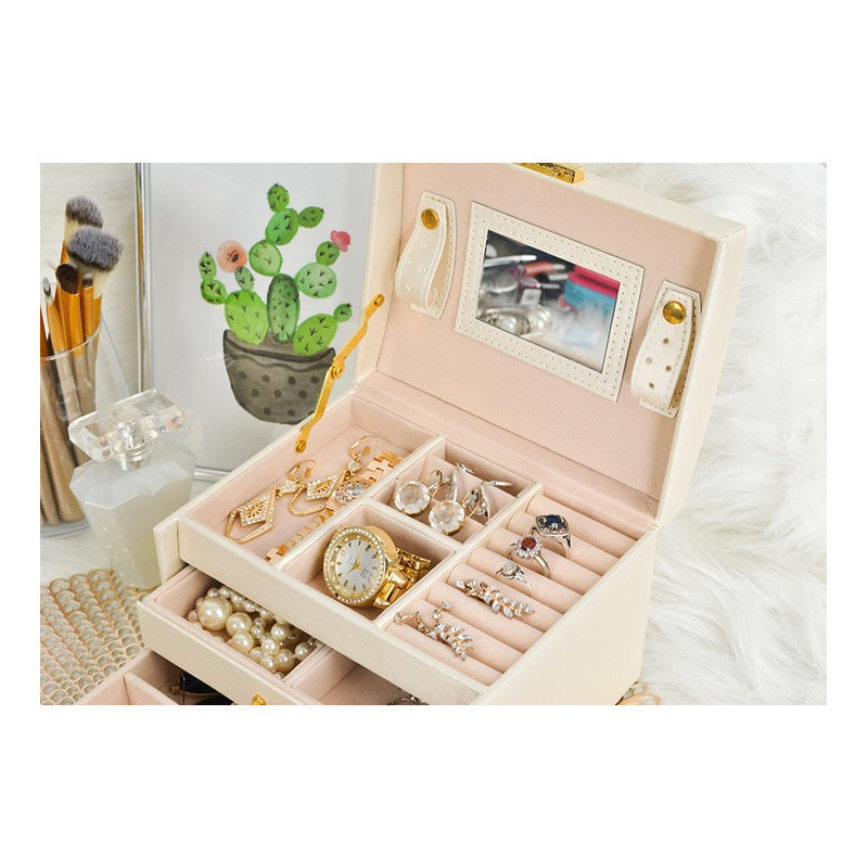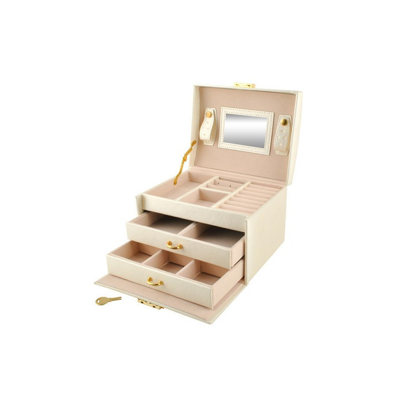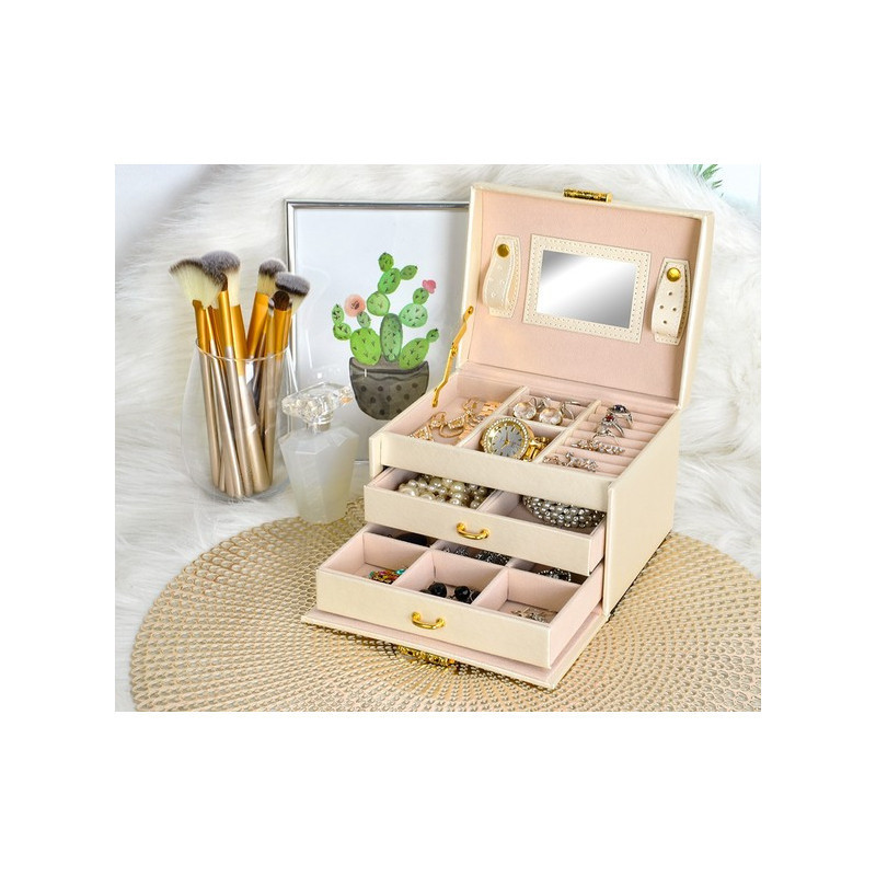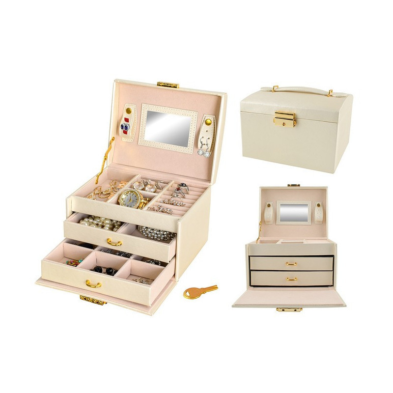 Ékszerdoboz - bézs, ékszer tároló, ékszeres láda, sminkes doboz